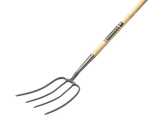This manure fork is lightweight, strong and well balanced, it has 4 sharp prongs and a 1,220mm (4 ft) long wooden handle with a T hilt.