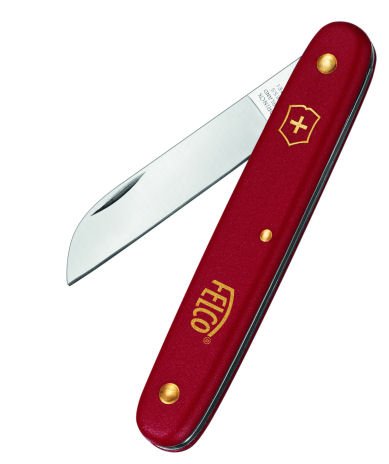 Felco Grafting/ General Purpose Nylon Handle Knife - Victorinox Grafting/General Purpose knife with nylon handle - High carbon stainless steel blade - 57mm/2.3 inch blade - Ideal for grafting, and general light pruning - very lightweight and compact - Red handle with brass detail - Genuine VICTORINOX Swiss product. Supplied new and clam packed