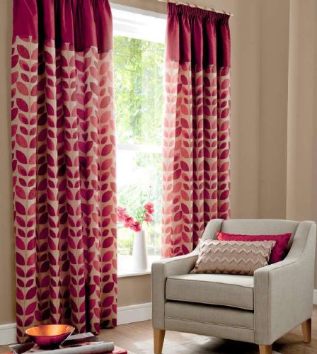 Check Here for Customer Reviews and Buy with Special Price STUNNING LEAF RED CREAM FULLY LINED PENCIL PLEAT THICK CURTAINS 46" X 54" *TUR*