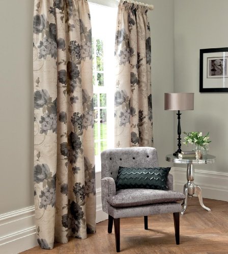 Check Here for Customer Reviews and Buy with Special Price TRUE RETRO SILVER BLACK GOLD CREAM FLORAL LINED PENCIL PLEAT CURTAINS 66" X 90"